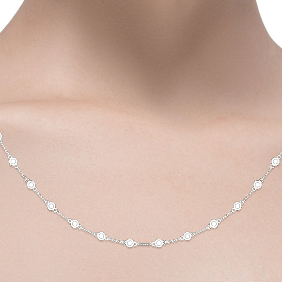 Your décolletage with sparkle with this diamond and gold station necklace, and complement the open neck look you are after.
