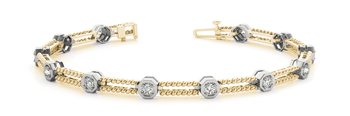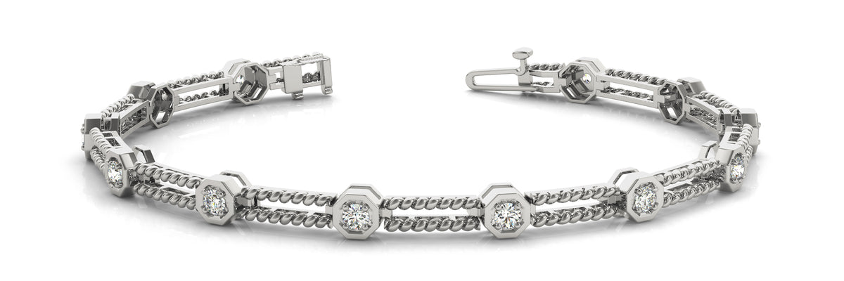 This is a unique piece with solid links joining the spaced diamonds in a octagonal setting